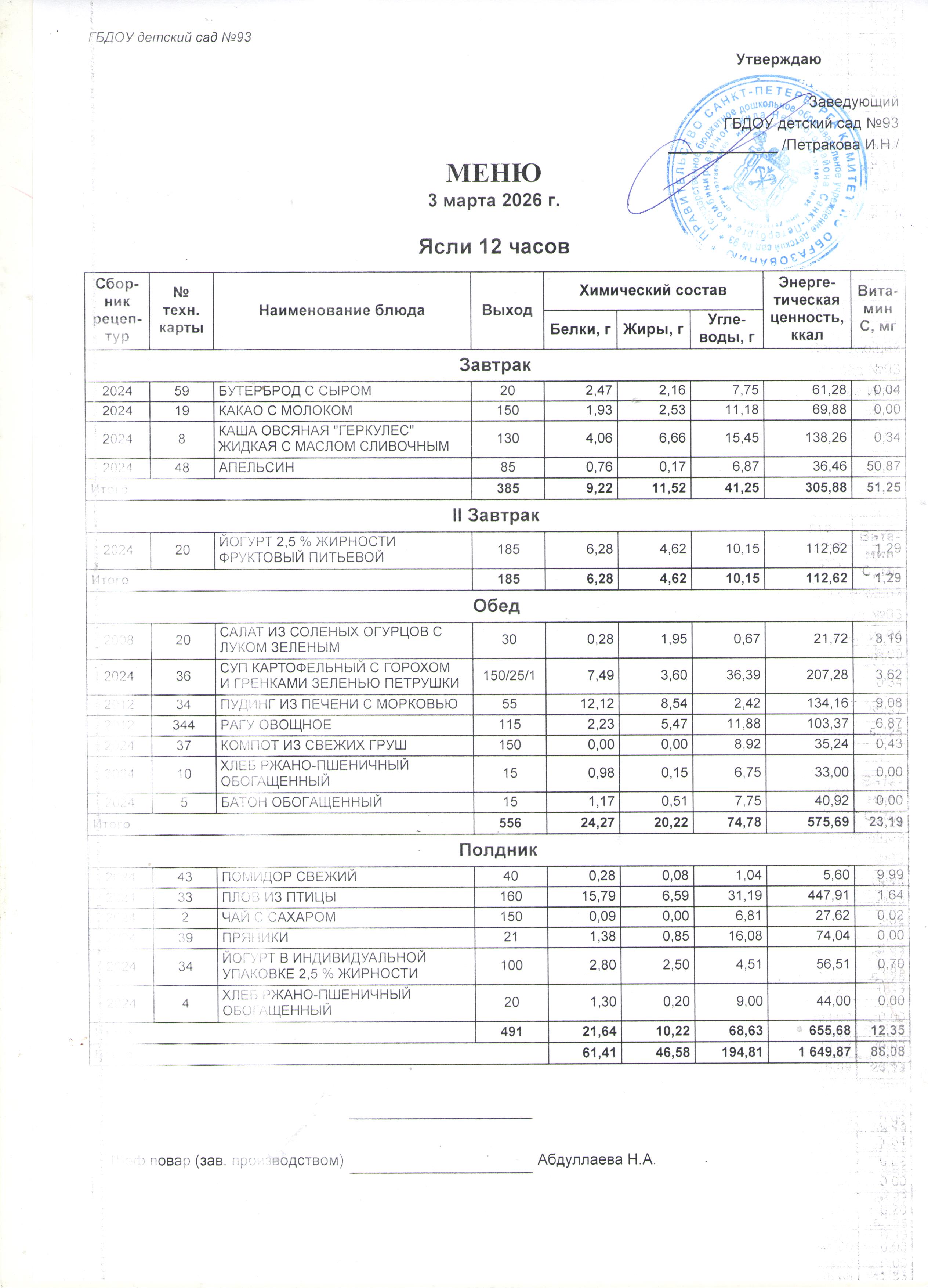 Меню ЯСЛИ по дням (применяемые нормы обеспечения питанием детей)