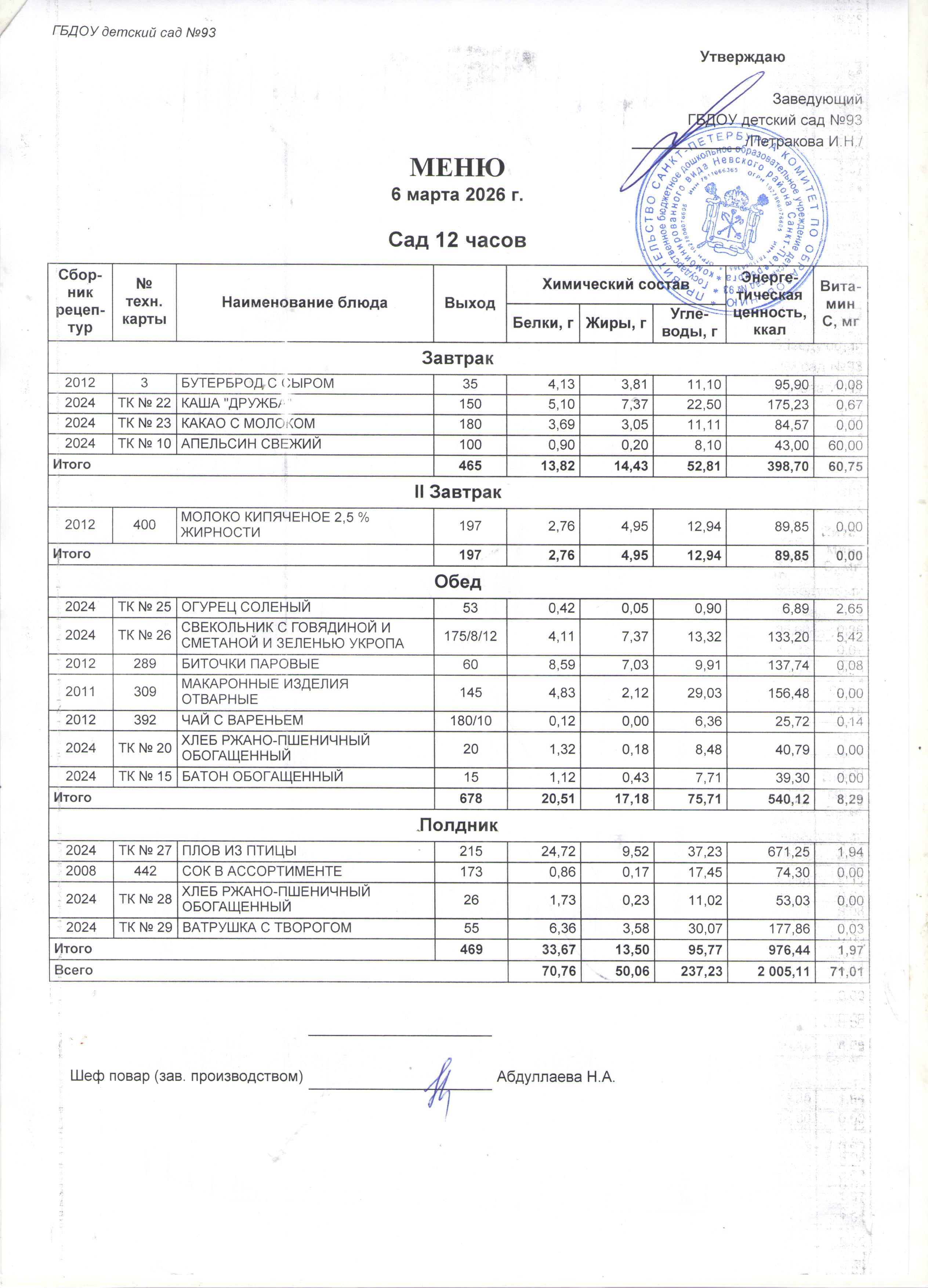 Режим питания: 4-разовое питание (завтрак, второй завтрак, обед, полдник).