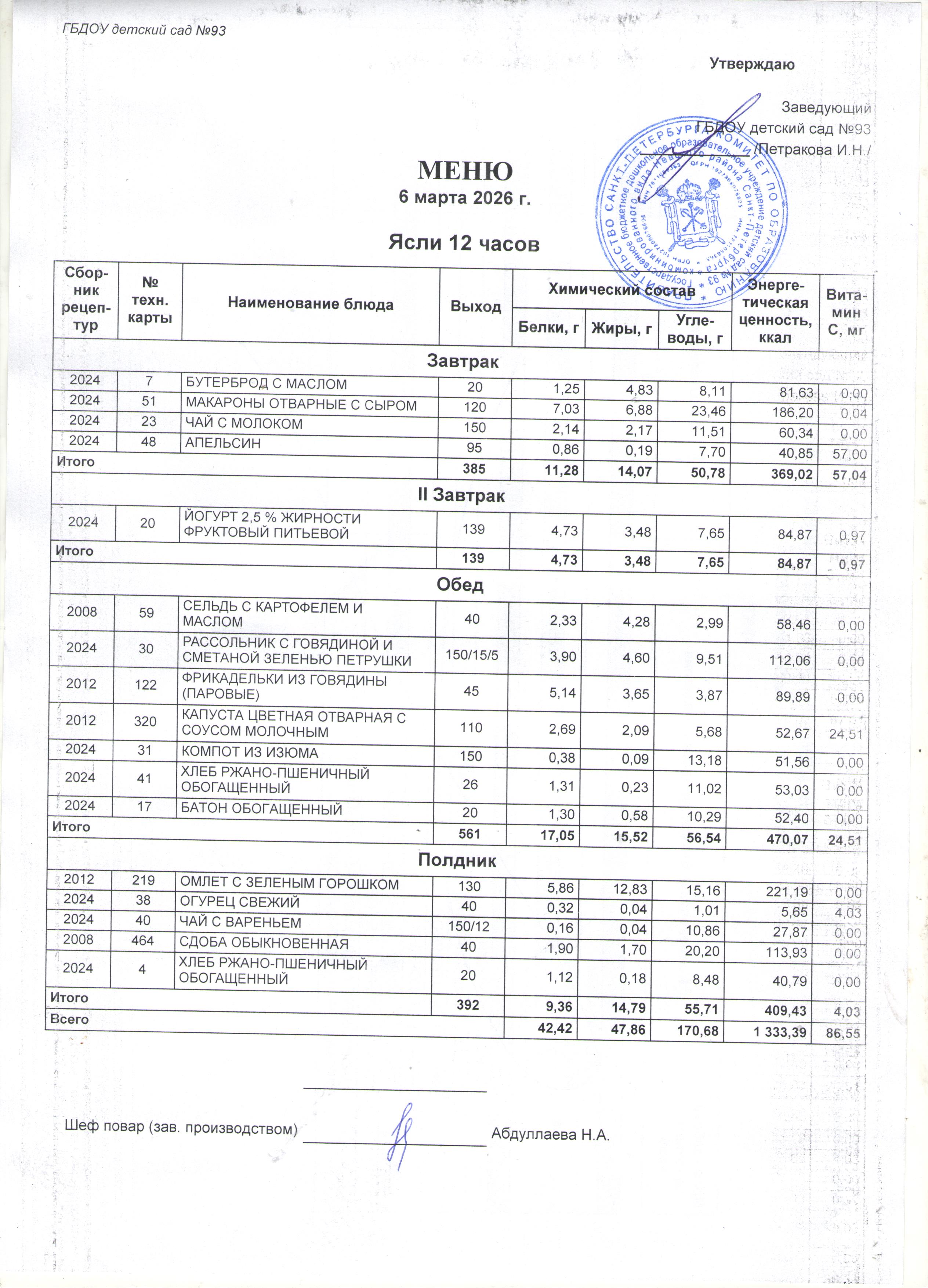 Меню (ясли) - применяемые нормы обеспечения питанием детей