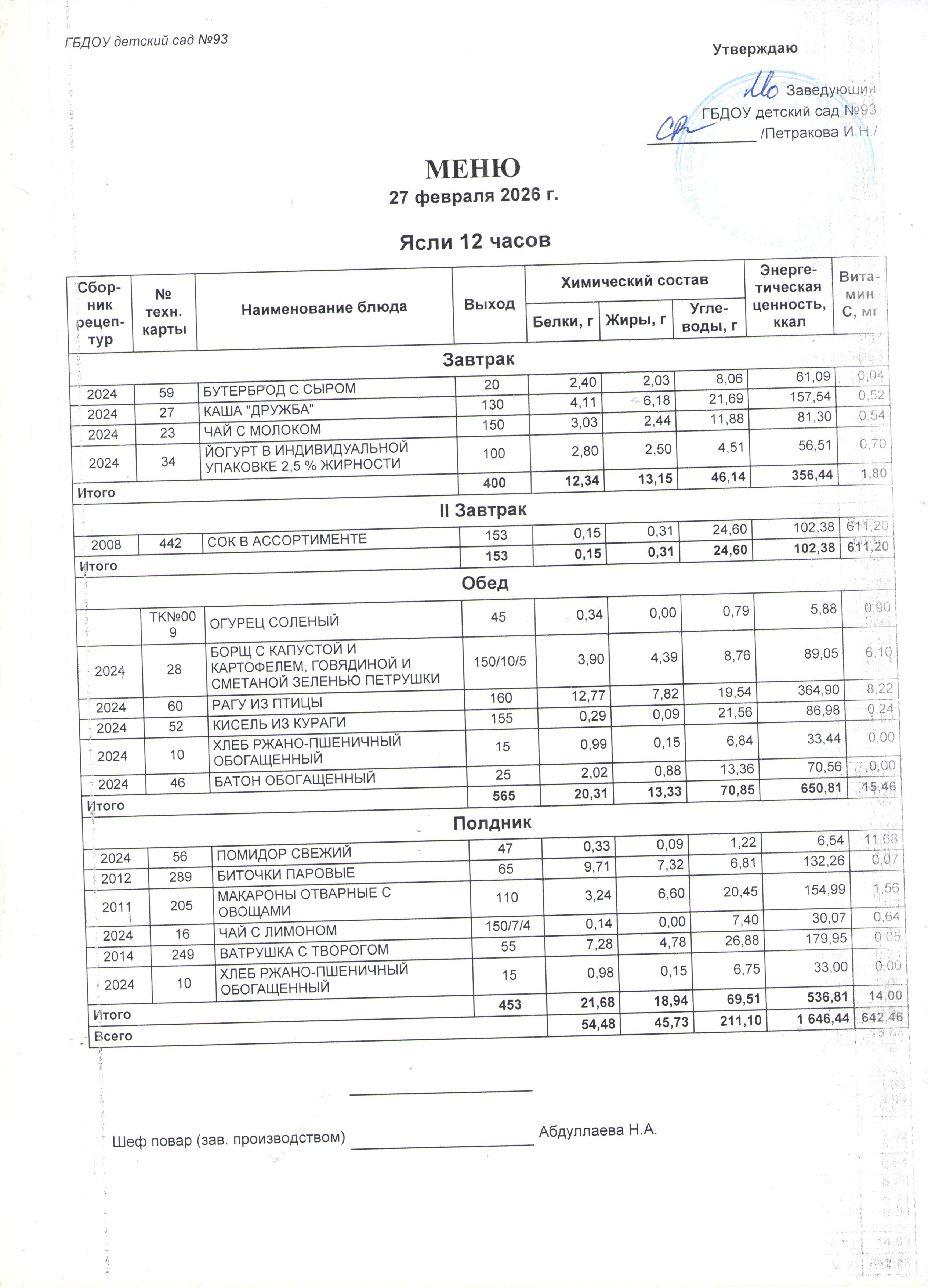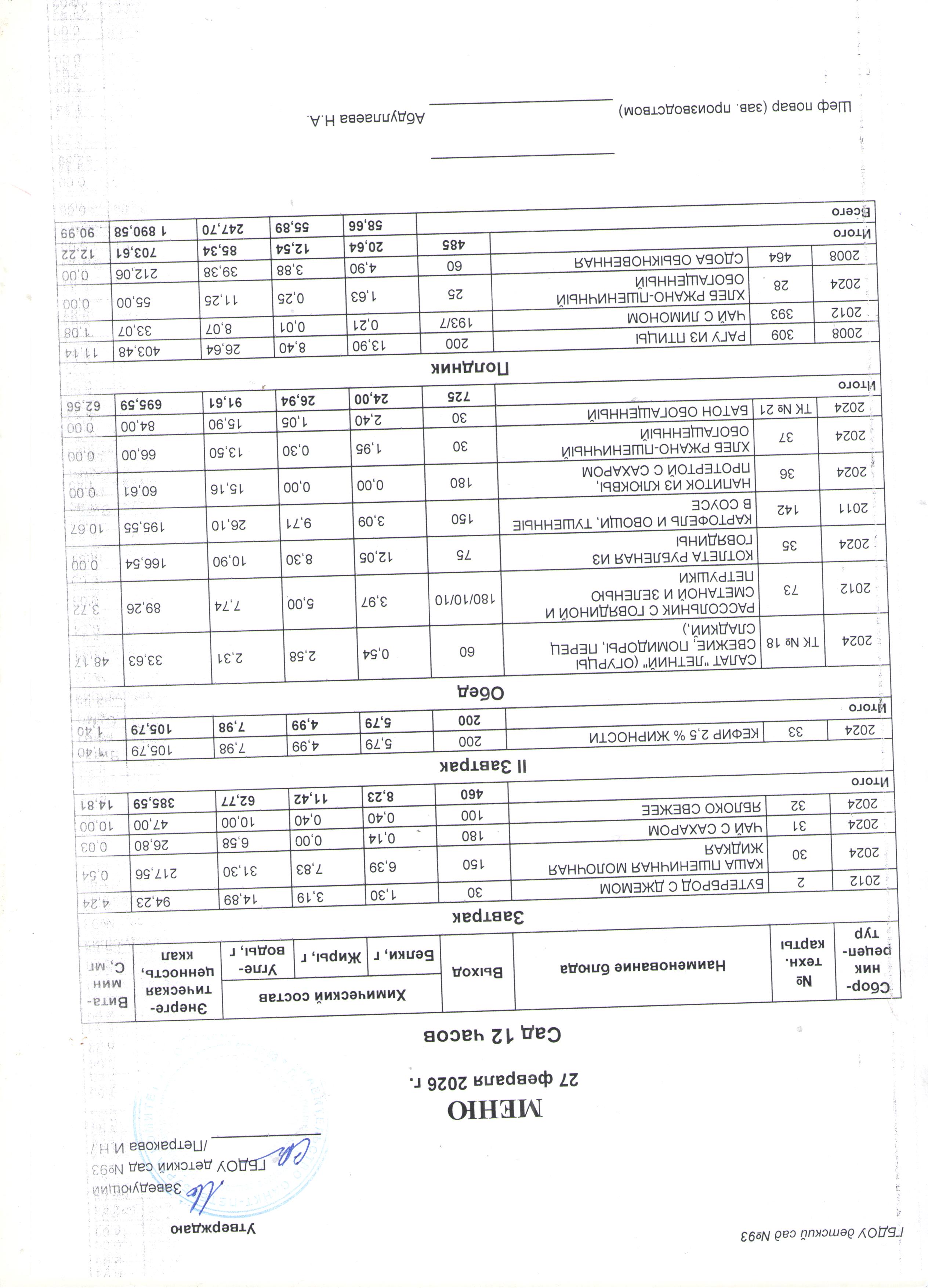 Меню ЯСЛИ по дням (применяемые нормы обеспечения питанием детей)
