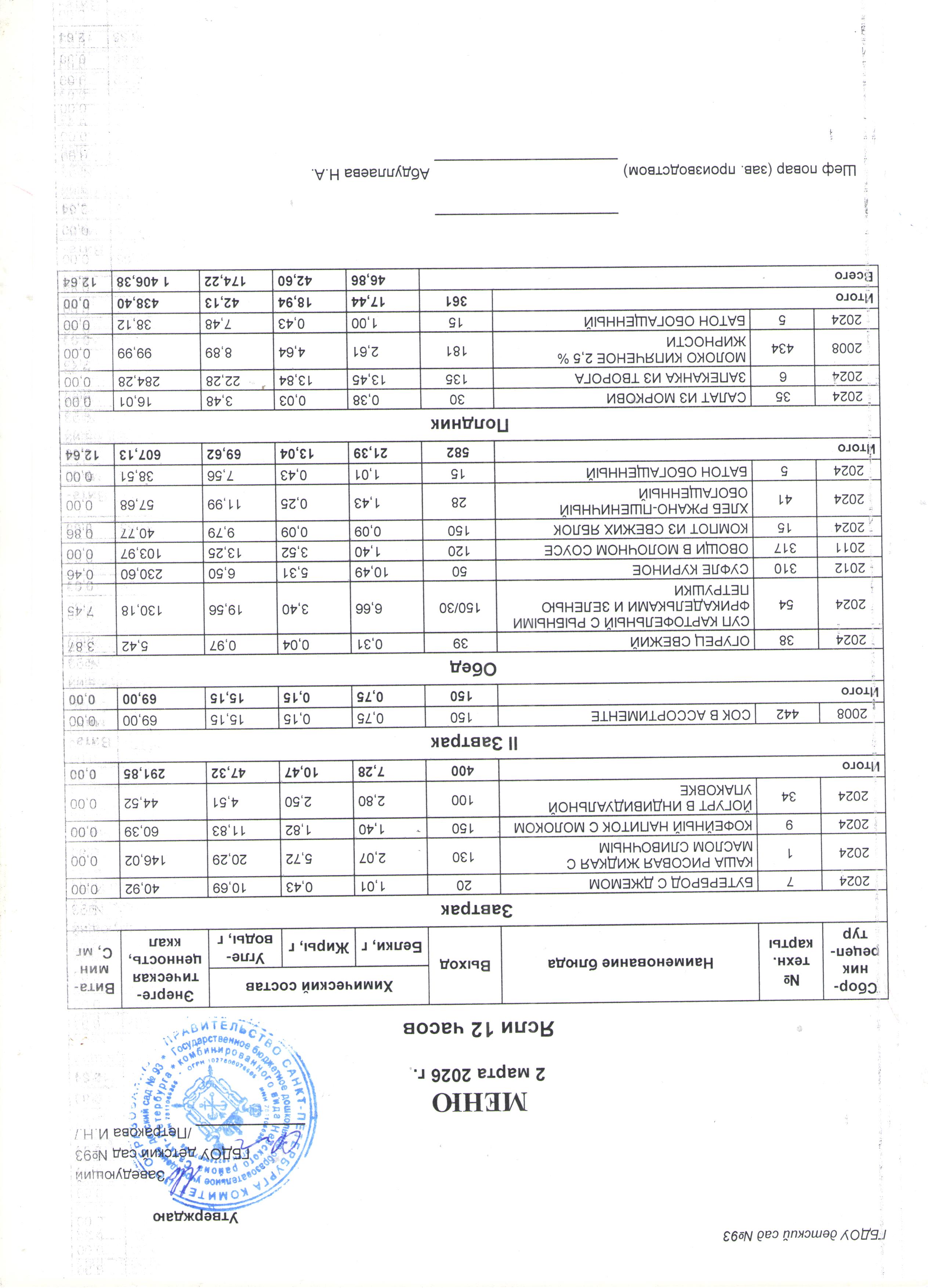 Меню САД по дням (применяемые нормы обеспечения питанием детей)